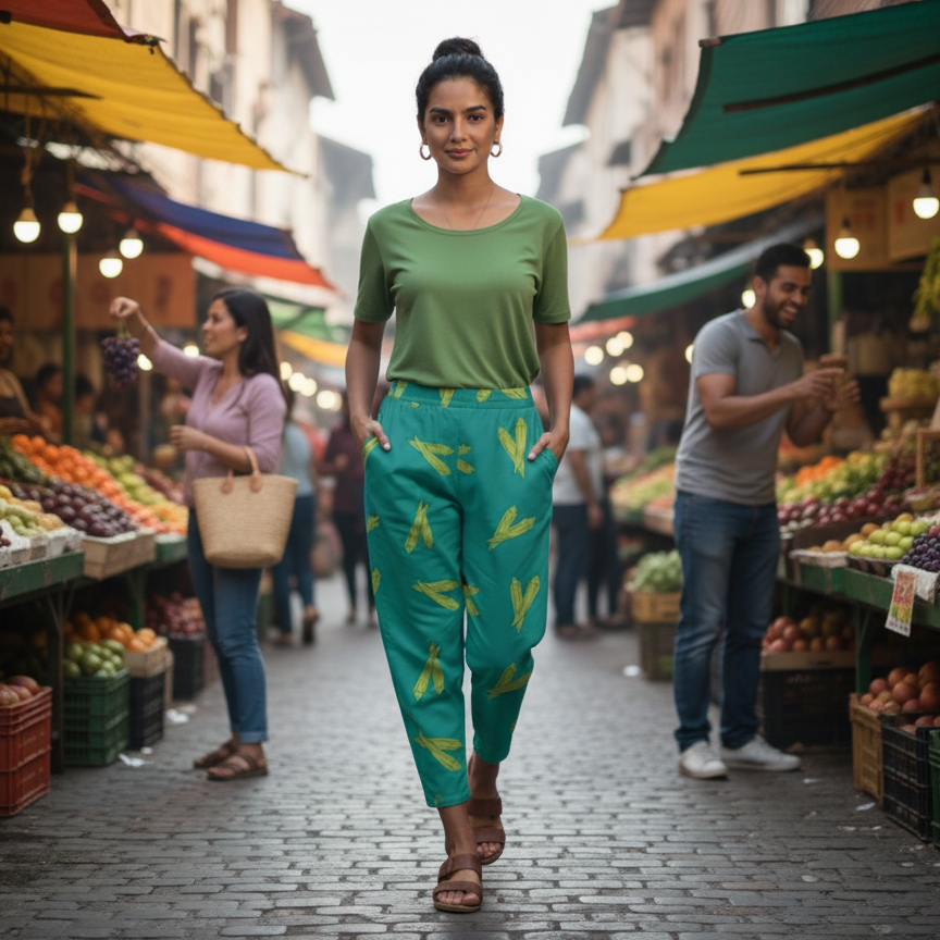 Inspired by the humble yet essential ladyfinger (Bhindi), the Bhindi Pant brings comfort, and effortless everyday elegance to your wardrobe. Crafted for women who love clothing that feels easy yet stylish, these pants offer a relaxed and breathable silhouette perfect for daily wear.