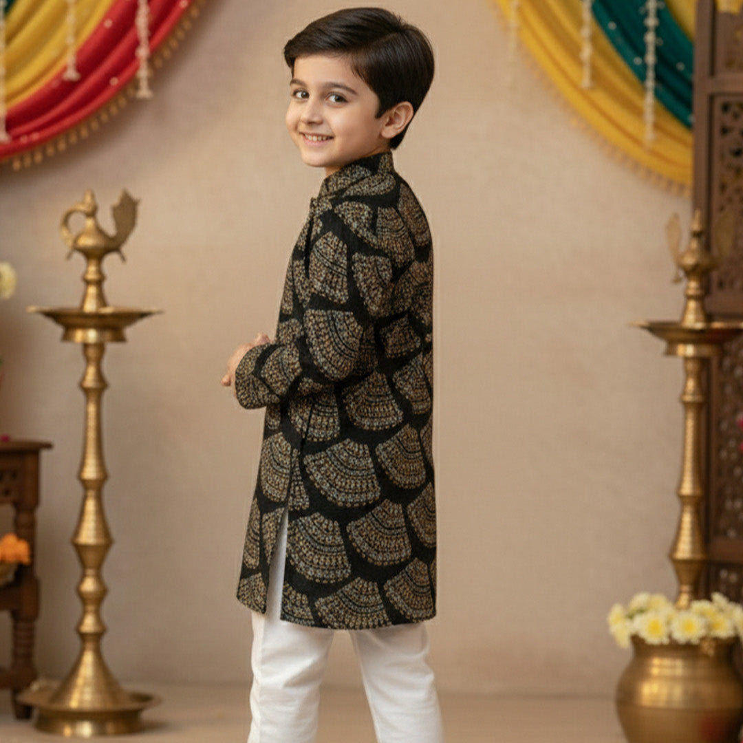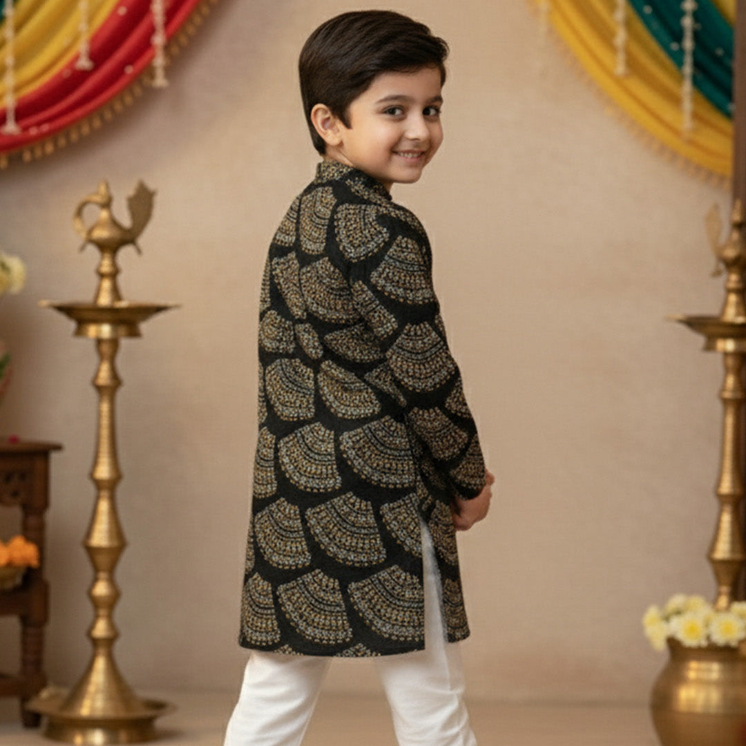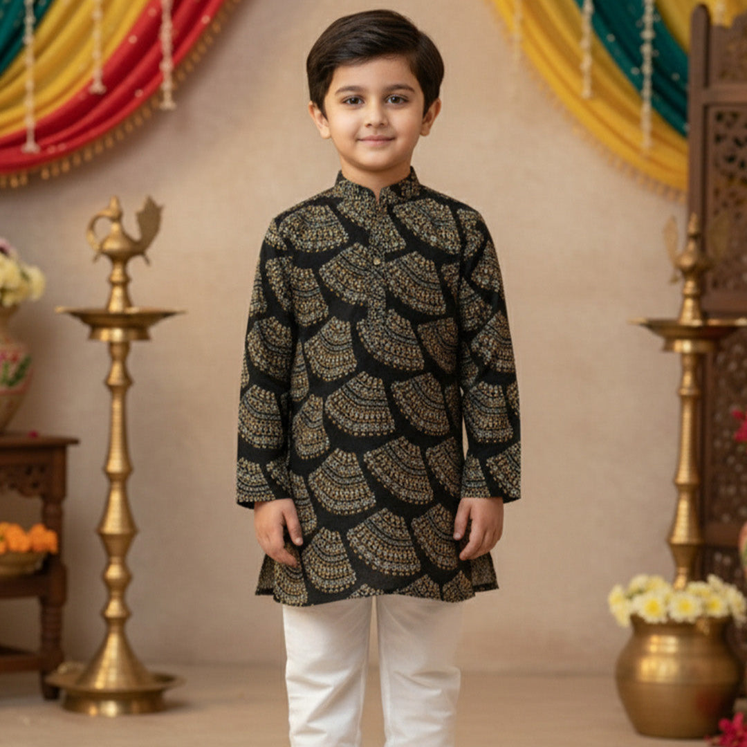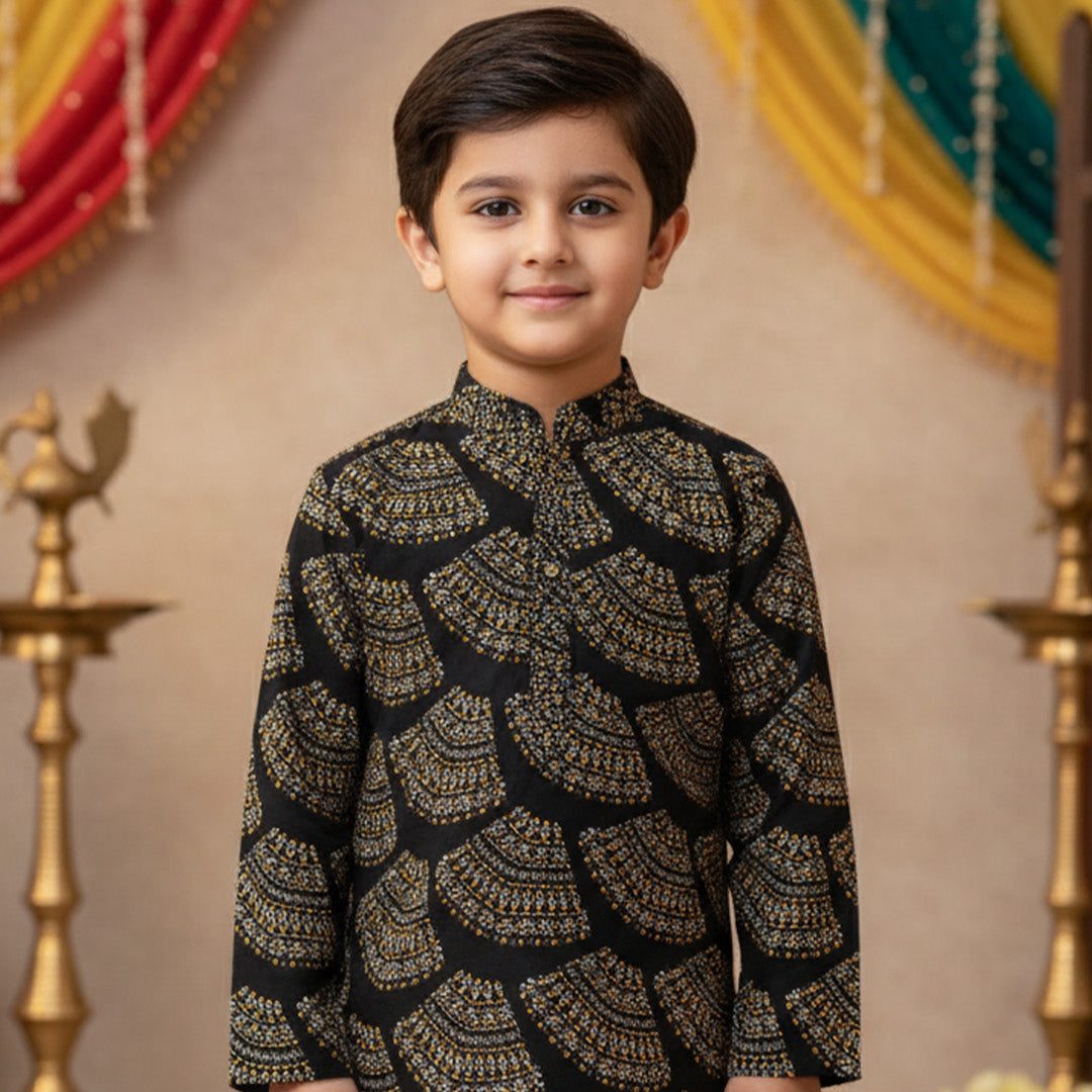 Black Bandhani Kurta Pajama Set for Boys| Pure Cotton