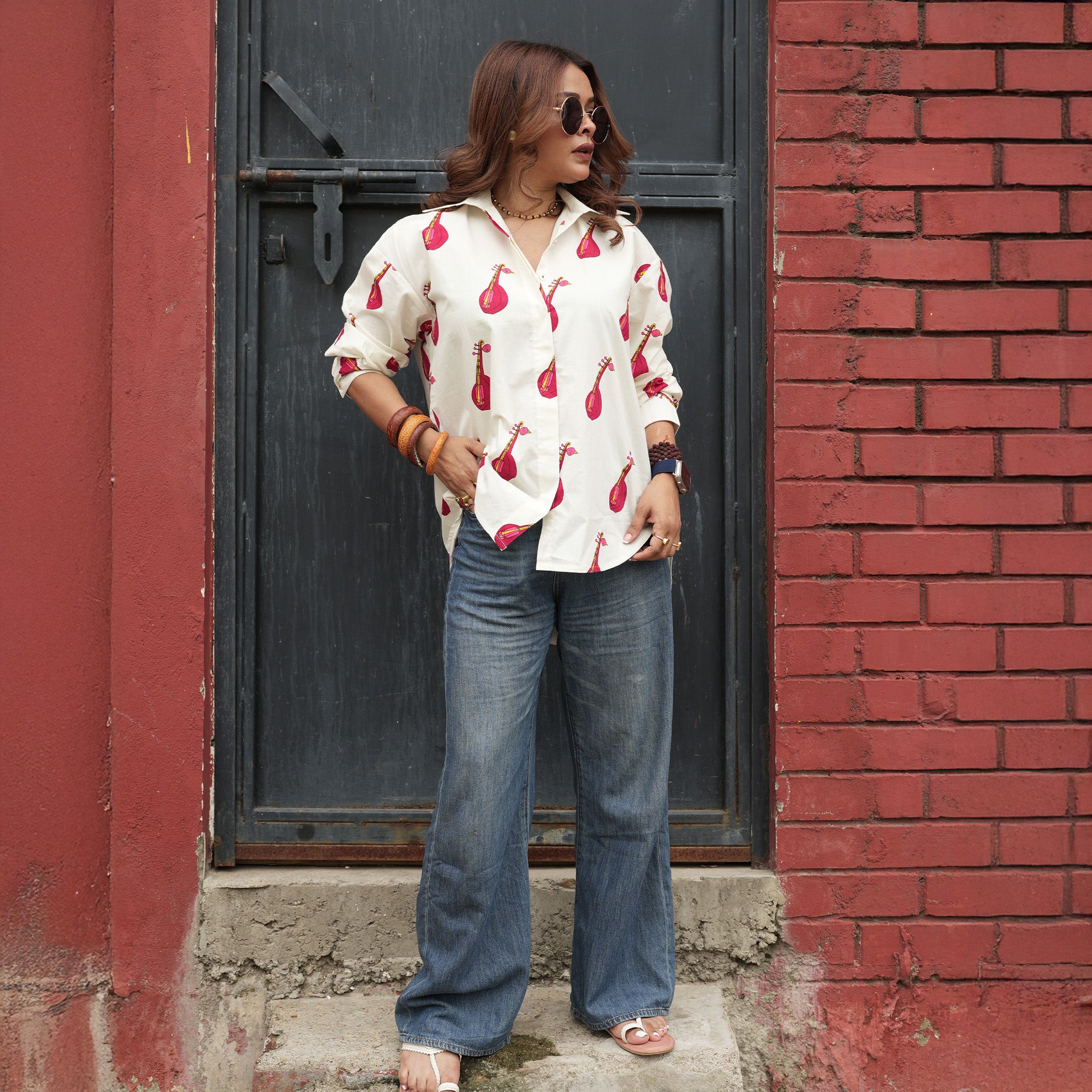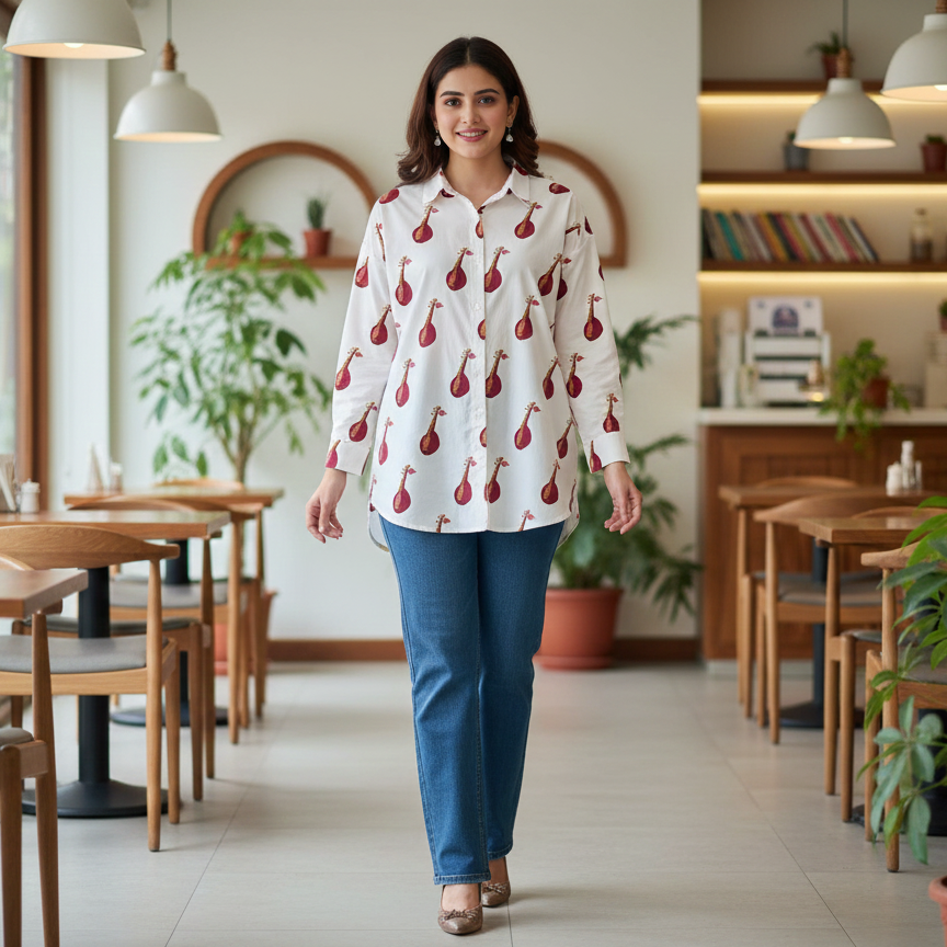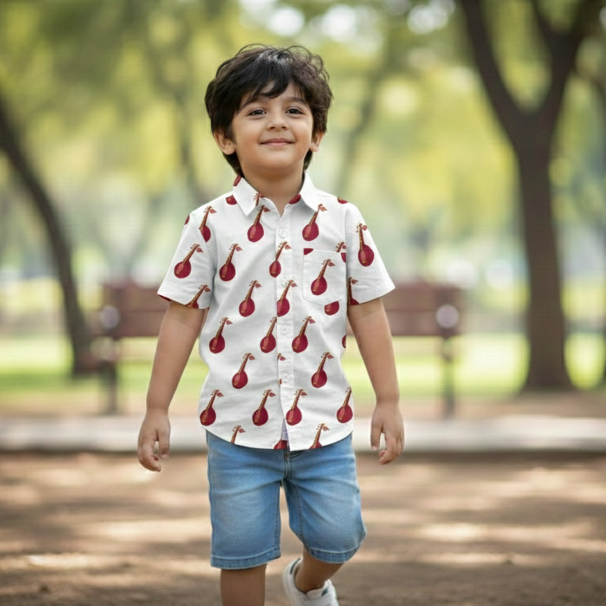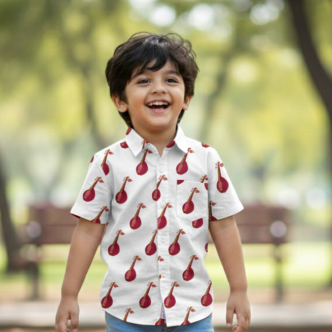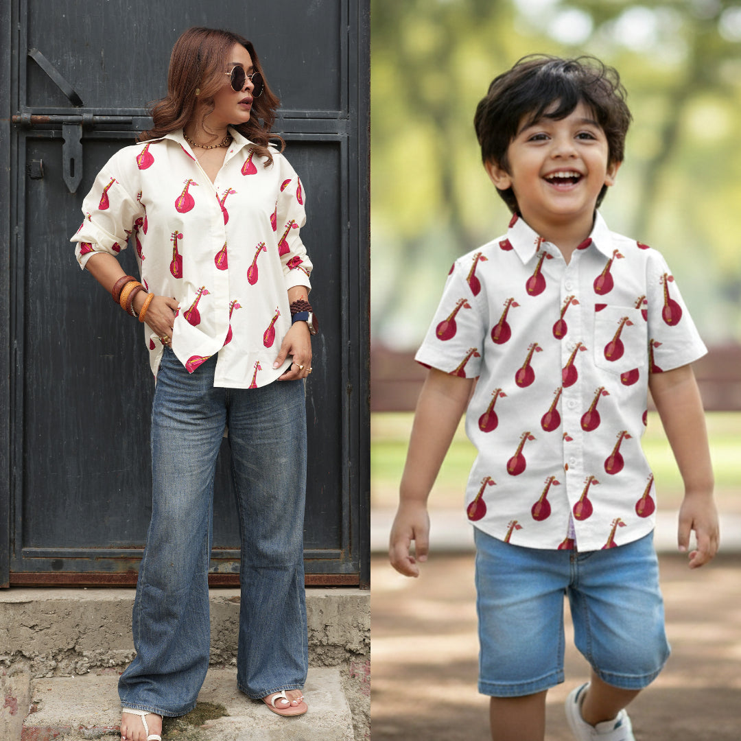Twinning Made Stylish: Matching Sitar Print shirts make every occasion special—from casual outings to celebratory moments. Perfect for creating memories together.