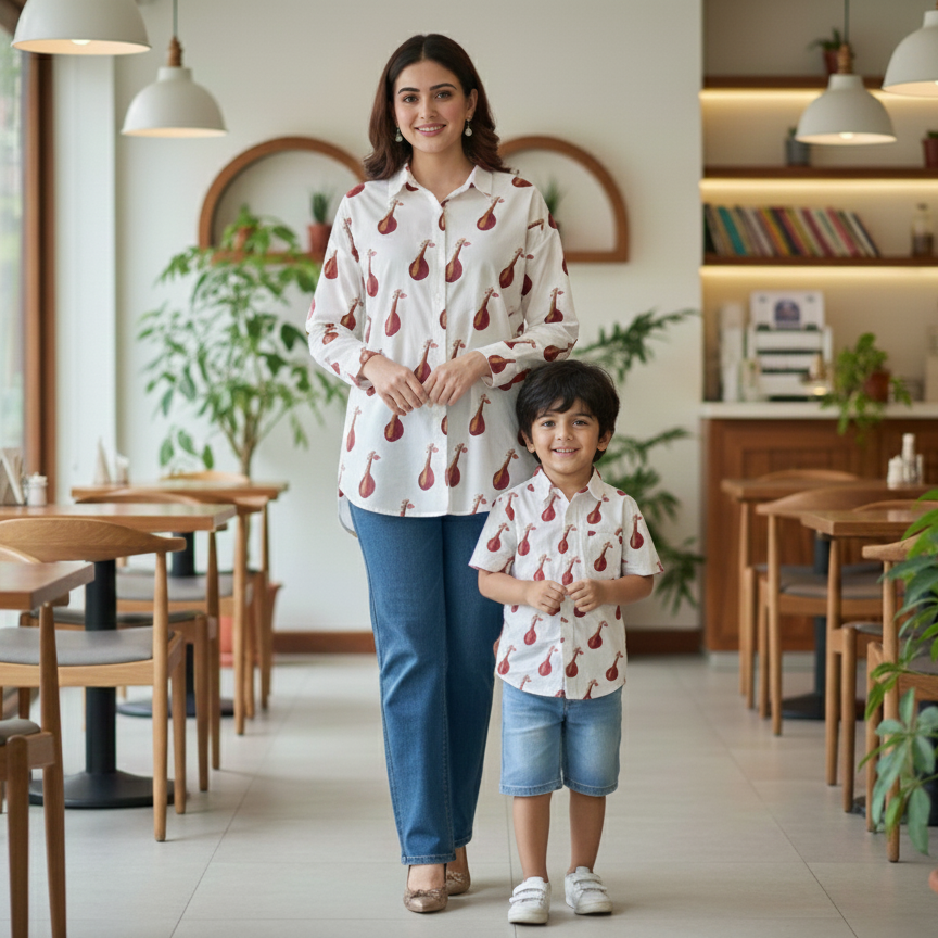 Celebrate the beautiful bond between mother and son with our elegant Sitar Print Twinning Shirts, crafted in soft and premium Cotton Poplin fabric. Designed to bring together culture, comfort, and coordinated style, these matching shirts add a touch of charm to every moment—whether it’s a family outing, festive gathering, or a day full of fun.