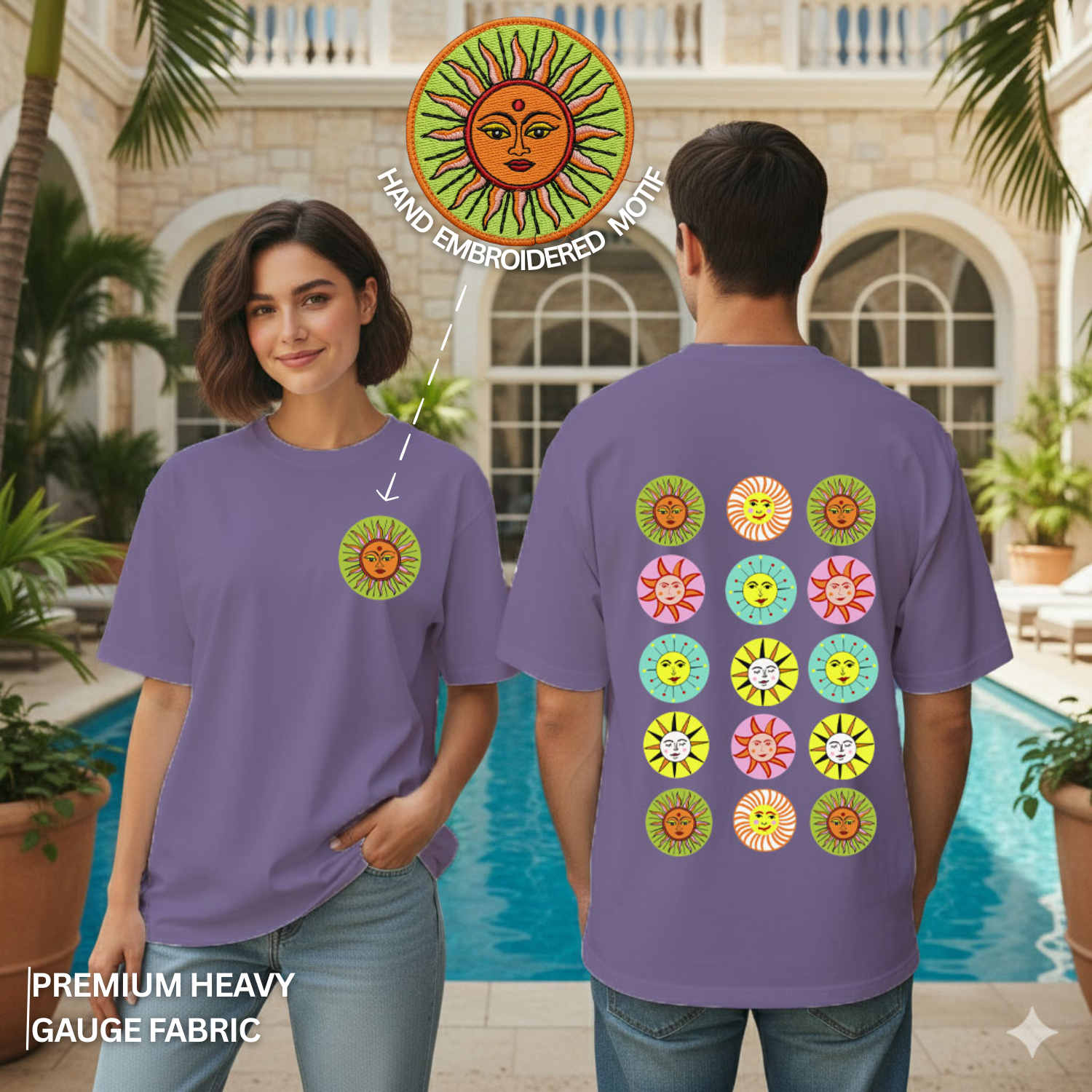 Featuring a minimal embroidered Sun motif on the front, symbolizing energy, protection and auspicious beginnings.