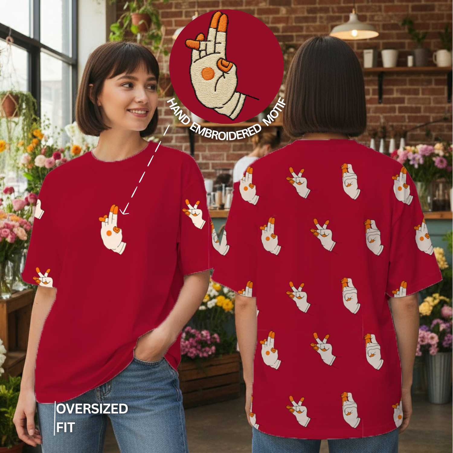 Featuring a minimal embroidered Mudra motif on the front — a quiet symbol of grace and cultural depth, worn close to the heart.