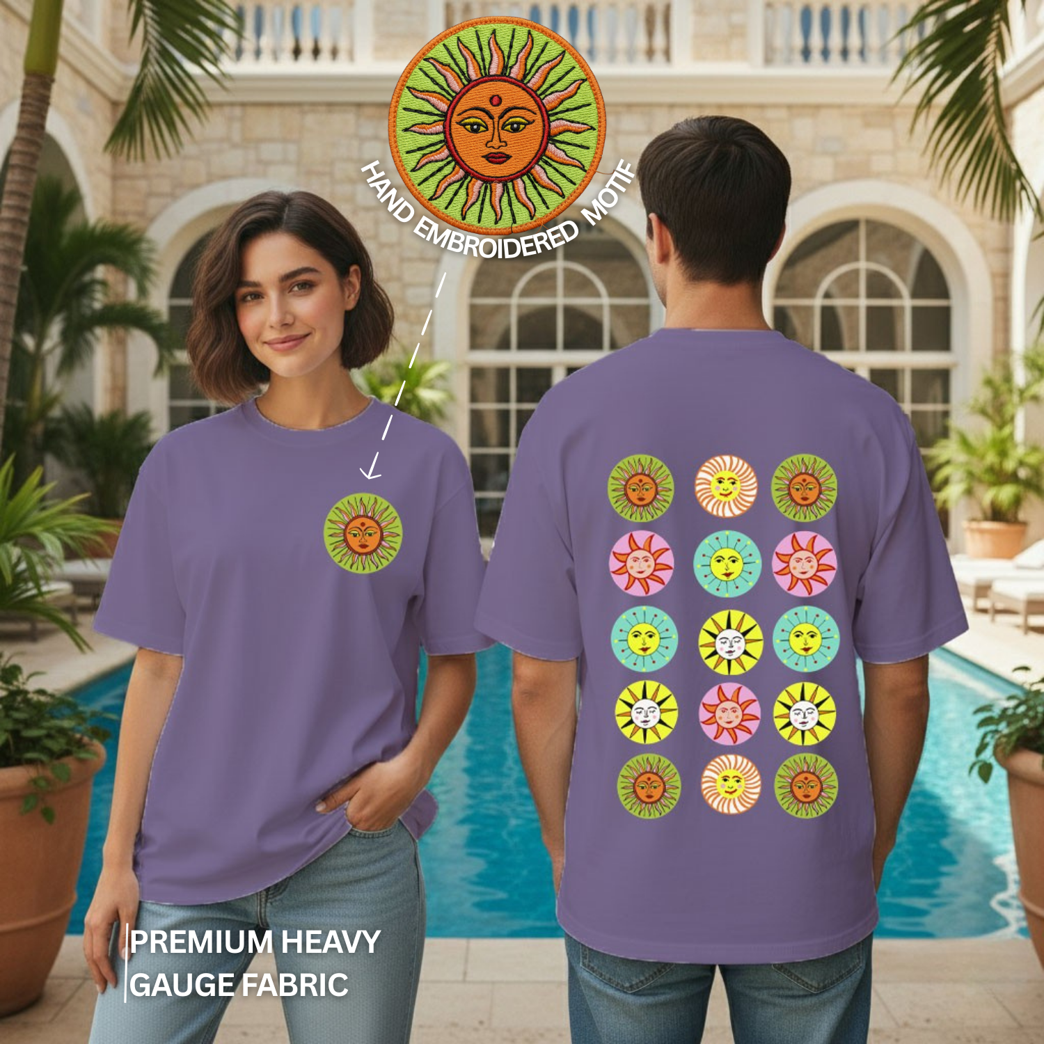 Featuring a minimal embroidered Sun motif on the front, symbolizing energy, protection and auspicious beginnings.
