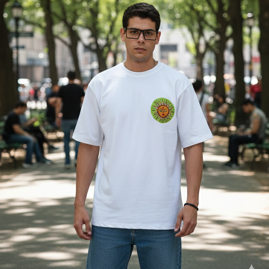 This T.shirt is a tribute to Suryadev — the divine force worshipped in Indian culture as the giver of life, light and strength.