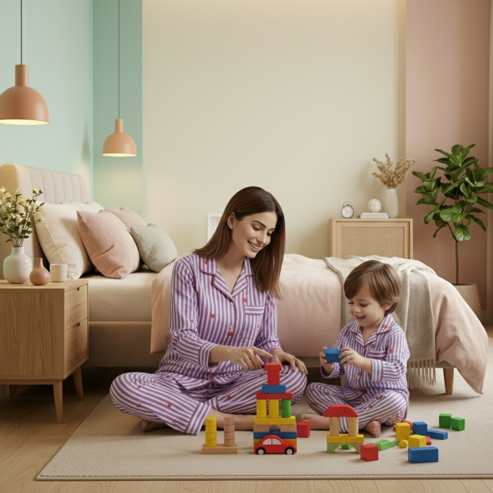 - Pure Cotton Comfort: Embrace the soothing embrace of 100% premium cotton, enveloping both moms and kids in a cocoon of softness and breathability, ensuring a peaceful night's sleep for all.Â