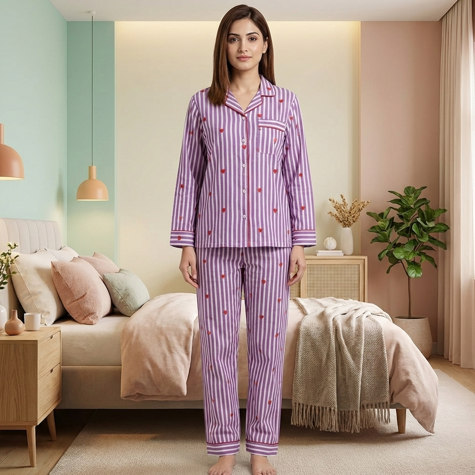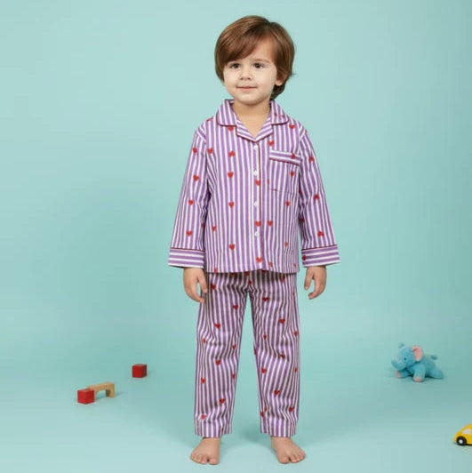 Purple Hearts Twinning Nightsuit Set| Pure Cotton