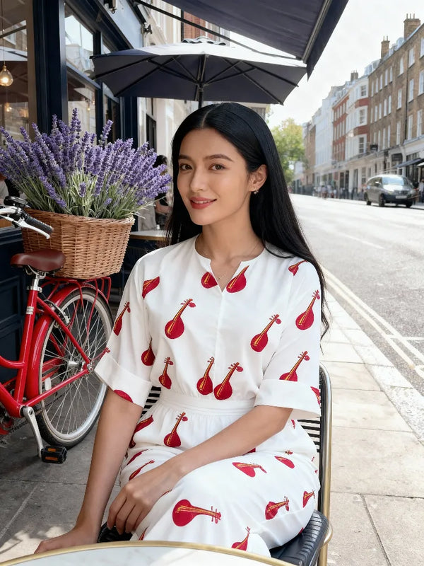 Every print at MASU is a fashion postcard from India, celebrating our rich heritage, vibrant culture, and timeless traditions. From the wisdom of the sitar and the strength of the hibiscus, to the playfulness of chai cups and temple bells, our designs capture the poetry of everyday India. Together, they form our narrative: