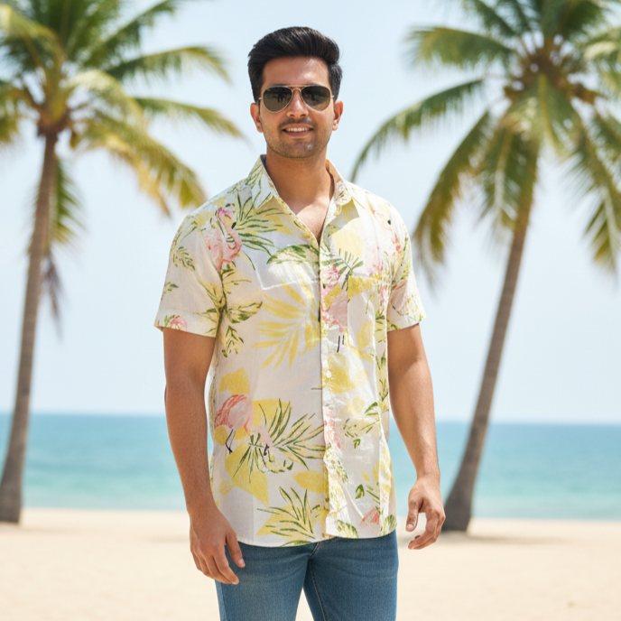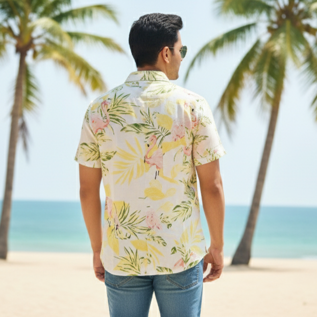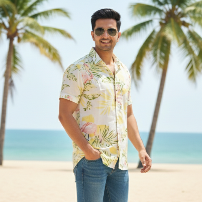 Weekends Shirt for Men| Yellow Flamingos| Pure Cotton
