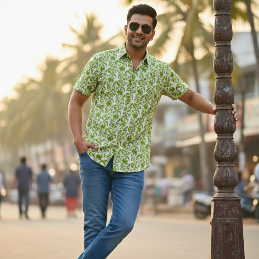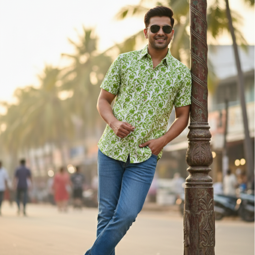 Tropical Shirt for Men| Green Forest | Pure Cotton